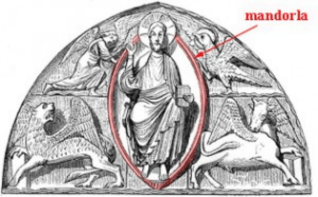 ¿Por qué se siguen usando mandorlas del Imperio romano occidental de la Roma antigua y su Imperio bizantino, la llamada pax romana? ¿Y por qué se denomina también mandorla a estos banderines y cual es su relación con la sexualidad femenina?