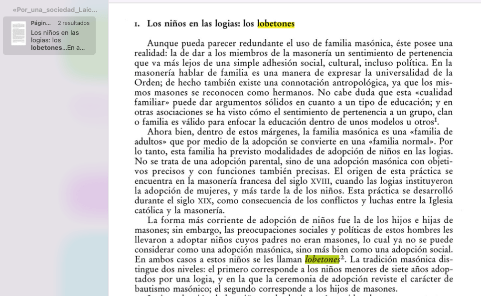 “La forma más corriente de adopción de niños fue la de los hijos e hijas de masones; sin embargo, las preocupaciones sociales y políticas de estos hombres les llevaron a adoptar niños cuyos padres no eran masones, lo cual ya no se puede considerar como una adopción masónica, sino más bien como una adopción social. En ambos casos a estos niños se les llaman lobetones.