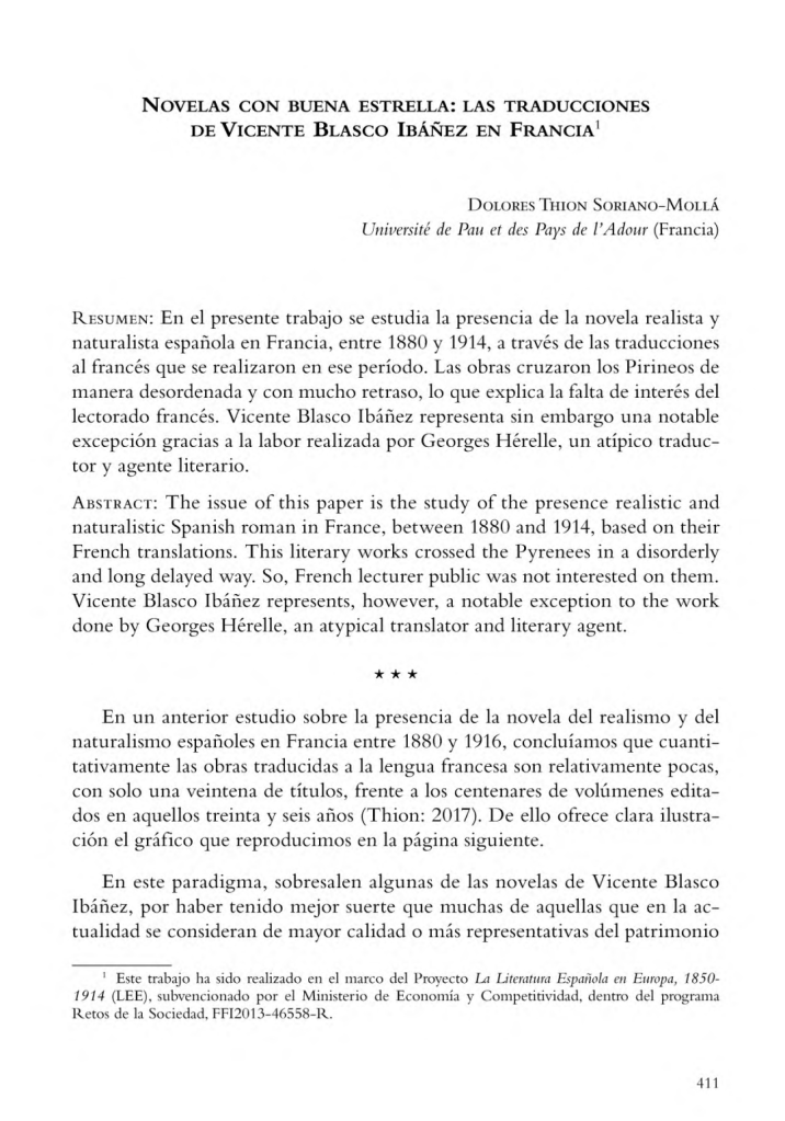 Novelas con buena estrella: las traducciones de Vicente Blasco Ibáñez en Francia / Dolores Thion Soriano-Mollá