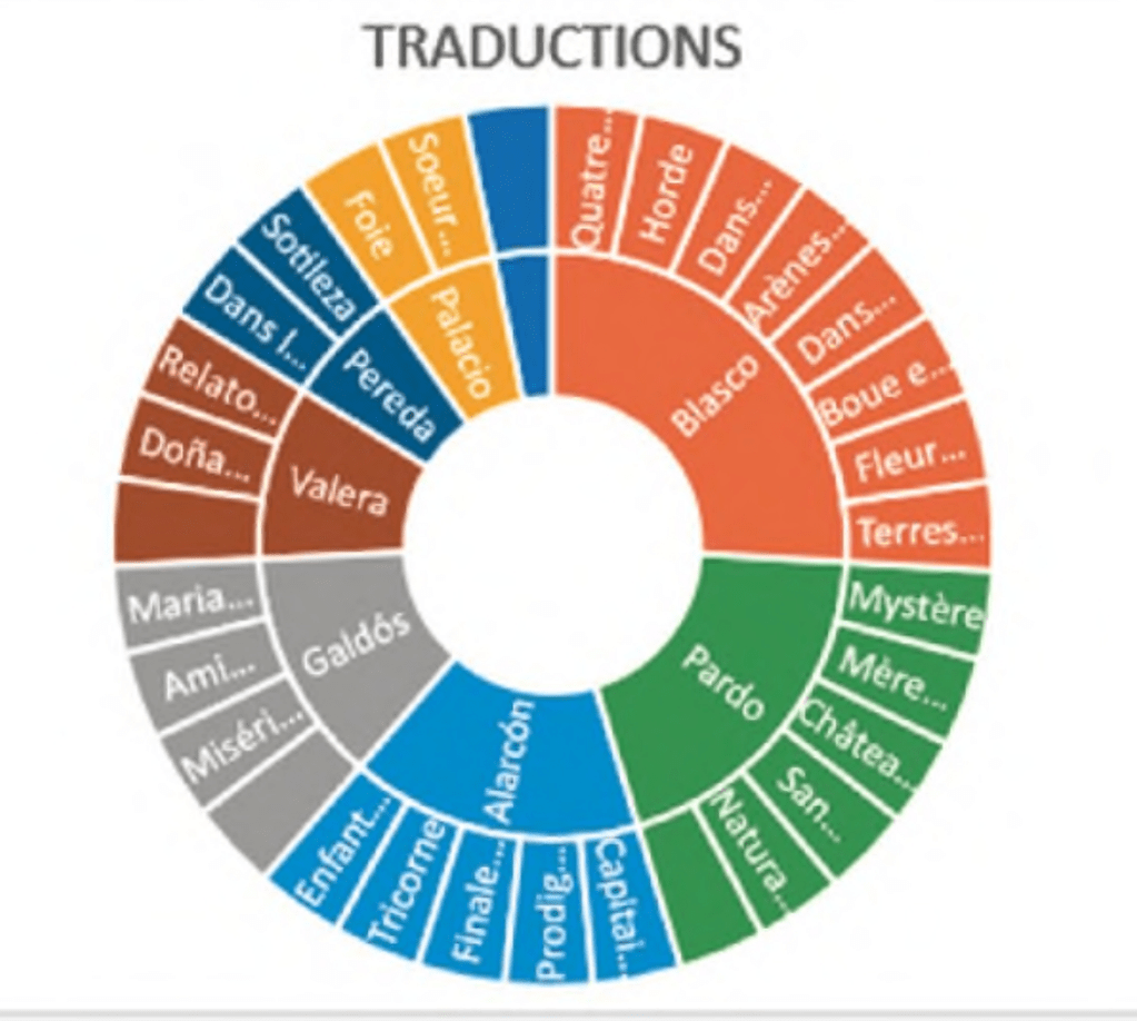 “…la novela del realismo y del naturalismo españoles en Francia entre 1880 y 1916, concluíamos que cuantitativamente las obras traducidas a la lengua francesa son relativamente pocas, con solo una veintena de títulos, frente a los centenares de volúmenes editados en aquellos treinta y seis años.”