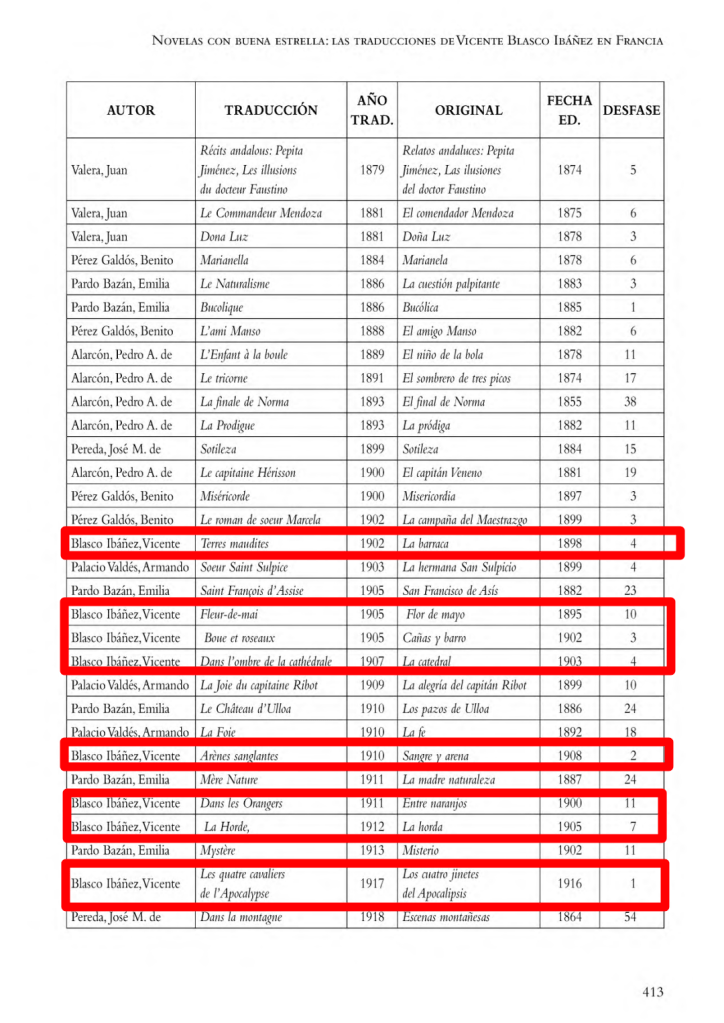 “…el autor mejor representado en lengua francesa entre 1880 y 1914 fuese Vicente Blasco Ibáñez.”