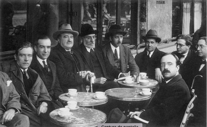 “Al día siguiente, por la tarde, vamos a la Rotonde, el famoso café, centro de artistas y de conspiradores de todo el mundo; gentes de los países más remotos; vidas inquietas, abrazadas a un noble ideal. A la izquierda de una de las puertas de entrada se halla la peña de los españoles; de los que gesticulan y hablan a gritos. Allí, D. Miguel de Unamuno, Ortega y Gasset, Corpus Barga, Francisco Madrid, escritores y periodistas, médicos, obreros. Blasco habla de su folleto. Madrid, excelente reportero, nos trae una noticia. Un hijo de Martínez Anido está en París y pretende que el Caballero Audaz escriba un ‘panfleto’ contra Blasco y otro contra Unamuno.