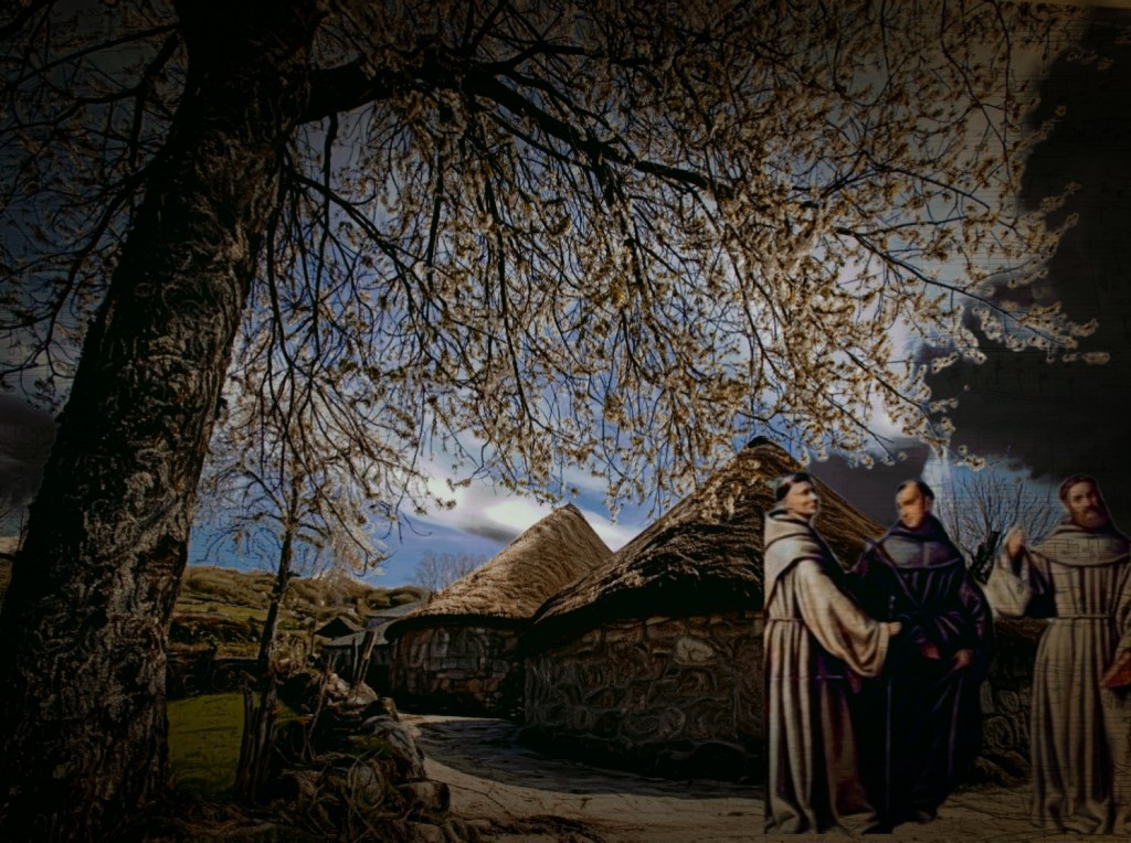 Allí reinaba en el paisaje el monte Abantos, lugar de culto pagano desde tiempos inmemoriales, como la zona en sí, de tradiciones mágicas que el sincretismo cristiano transformó en apariciones marianas, como muestran las pequeñas ermitas que abren el enclave por el Sur: la de la Virgen de Gracia y la de Nuestra Señora de Herrería. También una pequeña población llamada El Escorial, debido al nombre recibido de los restos de escoria, producto de la combustión de carbón realizada para el tratamiento de los metales de una herrería sita en la aldea; con relatos de extrañas procesiones de los herreros a lo alto del monte Abantos, que son muy adecuados para ilustrar y velar las elaboraciones futuras que se darán años después. El antiguo culto del dios celta Lugh, asociado a una divinidad de carácter solar, como Apolo, aunque los romanos reconocieron en él a Mercurio, por ser maestro de todas las habilidades y artes; incluso una antigua leyenda le otorga una victoria sobre otra divinidad en una batalla ganada con su lanza que le proporciona 40 años de paz en su reinado… curioso Se aprecia con estas particularidades una antigua tradición de la zona, arraigada desde la época de los vetones prerromanos. En otras zonas celtas se la conocía como el «Lughnasadh«, las bodas de esa divinidad o como las tres noches de Lugh, que coincidían con los primeros días de Agosto y la lluvia de estrellas conocida como las Perseidas, se transformaron en «Saint Laurent», por tierras galas, nuestro San Lorenzo…vaya.