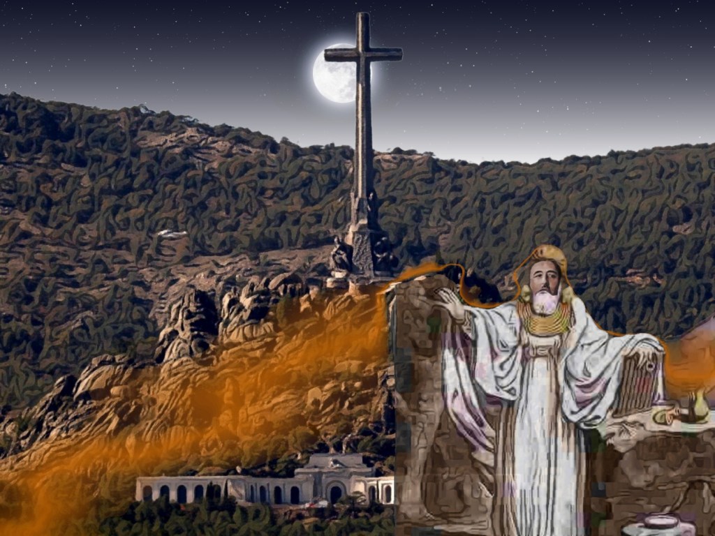 Analizadas las fichas con las que iba a jugar el Generalísimo en su partida por llegar a la cima de los héroes elegidos, intentemos comprender el tablero en el que se iba a representar su ascenso a lesos altares. Una vez trazado con absoluta corrección la línea que unía la estela visible (nos referimos a la Gran Cruz de los Caídos) donde se conectaba con los restos de los linajes hispanos y realizadas las liturgias pertinentes descritas para hacer funcionar esos engranajes en tiempo, espacio y demás componentes sutiles, descubramos ese camino, o laberinto de pruebas de carácter espiritual, que nos lleve a dilucidar el mensaje oculto hasta la cripta, a modo de cueva iniciática encerrada en el interior de esa gran montaña. Tal como sentenciaba el tradicionalista Guénon: «la caverna debe considerarse situada bajo la montaña o en su interior, de modo que se encuentren bajo el mismo eje, lo que refuerza aún más el vínculo existente entre ambos símbolos, en cierto modo complementarios entre sí».