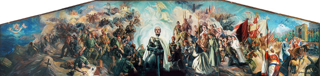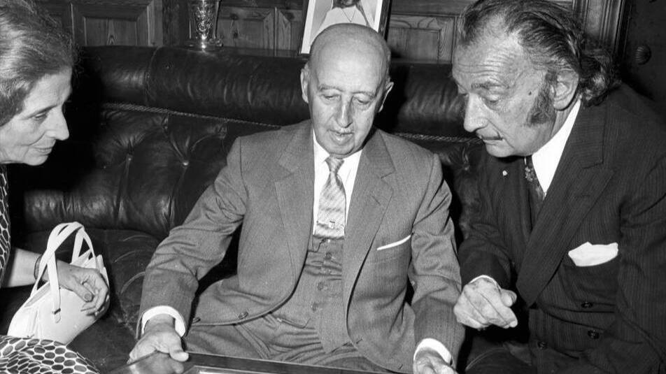 Hace rato que dejamos a ese amigo-mago del Caudillo, pintor afamado, artista provocador de performances cargadas de simbolismo y, como no, monárquico metaafiiíssicooo, a la espera de algún encargo. De algo que enlazara, resucitara esa colaboración con el Caudillo, que acabara de rematar algún enganche que no quedó del todo cerrado. Y allí estaba el enclave que nos aguardaba de la mano de un mago-artista en sus últimos suspiros en esta parte del mundo. De nuevo abrimos la cerradura de la mano de las pistas de nuestro inestimable ujier, que nos proporciona la llave.