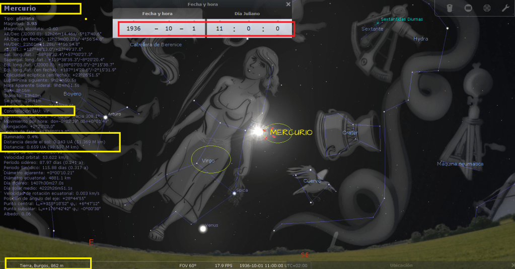 Los cielos en esas fechas del «Día del Caudillo» en aquel 36 y el «Día de la Victoria» del 39, tenían como peculiaridad común a Mercurio-Hermes, el mensajero de los dioses, en su fase más próxima a nosotros, justo para recoger el aviso. En la primera fecha, donde se celebró el inicio del «Caudillaje», el planeta mensajero se encontraba en Virgo, símbolo de la Virgen y del cual es el mismo Mercurio regente, en día de luna llena posicionada en la constelación de Piscis, asociada simbólicamente con el cristianismo; al igual que de nuevo, Mercurio en su fase nueva y más cercana, acudía también bajo el manto sideral de Piscis, ese concreto «día de la Victoria» para notificar a la divinidad pertinente (a saber).