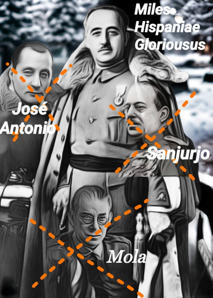 Tan sólo nos queda un pequeño enigma al que llegaremos de la mano de las otras máscaras o pseudónimos del Caudillo. No sólo nos referimos al ya mencionado de Jakim Boor, o al conocido alias que utilizó para firmar el guion de la película «Raza» (¿Azar?) de 1941, inspirada en una idílica vida de héroe nacional donde el Generalísimo quiso proyectar la suya propia, Jaime de Andrade. Ese apellido era el segundo de su madre, y con este pequeño detalle abordaremos el reflejo hacia su persona del resto de los pseudónimos.