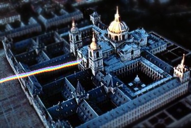 Esa imagen de la cruz hipercúbica, su asociación con El Escorial herreriano y la utilización del mensaje de la piedra laberíntica, nos lleva a compararla con la forma de la «semilla» o centro de aquella esotérica construcción. La Basílica: la entrada, con su larga bóveda central inaugurada por el cubo formando una tríada con el Padre y el Hijo, los cuatro brazos formando el crucero del templo, con la base cuadrada de la enorme cúpula y el Panteón Real justo debajo, como cubo inferior, siendo el cubo postrero el correspondiente al Altar Mayor y las estancias reales.