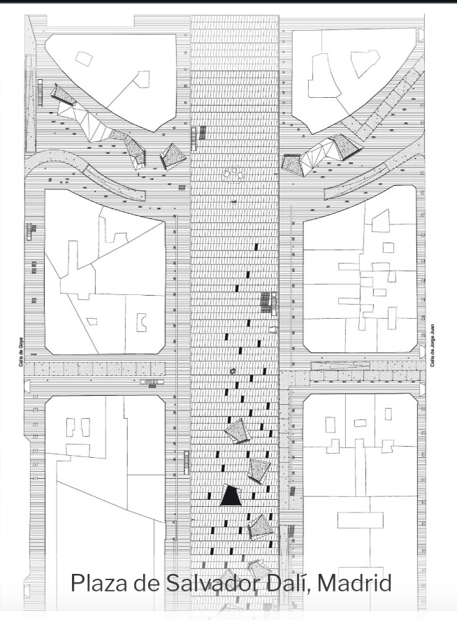 La ubicación de la recreación megalítica pretendida por Dalí y el Ayuntamiento de Madrid, en esos momentos gobernada por el PSOE, supuestamente de ideología contraria, sería en la antigua Plaza de Felipe II y la luz procedente de esa puesta de Sol equinoccial arribaría de la avenida que lleva su nombre. No podía llamarse de otra manera si la intención era conectar ambos engranajes con aquel tiempo; incluso la puesta de Sol del día de la Hispanidad, los 12 de Octubre, accede alineada a su paso desde la Plaza de Oriente, junto al Palacio Real, paralela al eje del Templo de Debod, del que dista 2 millas náuticas exactas del Dolmen de Dalí, y este templo egipcio a su vez, a exactas 22 precisas millas náuticas del monasterio de El Escorial, también; esto es, a 2 minutos y a 22 minutos de grado de arco entre ellos y el dolmen a muy poco más de 44 kilómetros del Real Sitio de San Lorenzo. Por no hablar de las exactas y precisas 111 millas inglesas, desde el Dolmen de Dalí hasta el lugar de la fachada .Sur de la Catedral de Salamanca, donde «doctoraron» a la figura del Generalísimo con su vítor al «Miles Hispanicus». Una conexión numérica, entre emplazamientos que ya hemos visto anteriormente.