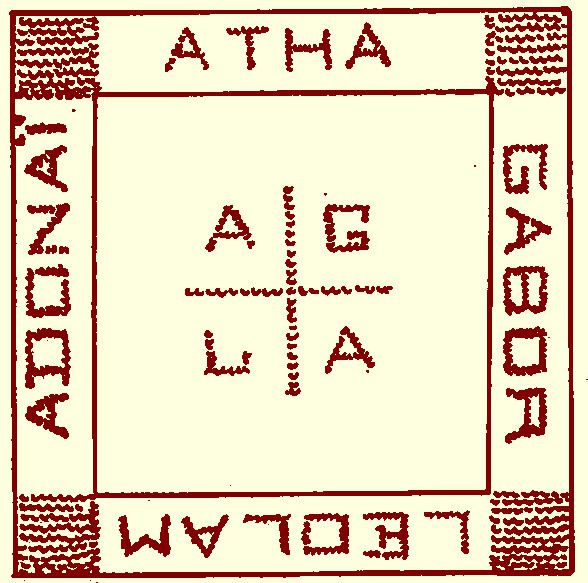 Y en esa búsqueda de variar las letras y hallarles un sentido nos encontramos con el «notarikón» (notario público), un método cabalístico para reordenar palabras y frases utilizando cada una de sus iniciales, sus letras finales, o las dos intermedias para formar otras palabras u oraciones e ideas diferentes. Del griego original derivó al latín «notarius», que significa «escritura abreviada». Se utilizaban estos acrónimos para formar nombres secretos de Dios procedentes de versos religiosos o bíblicos. Un claro ejemplo es el acrónimo mágico formado por AGLA (אגלא, en hebreo), de la expresión «Atah Gibor Le-olam Adonai«, que se puede traducir como «Tú, oh Dios, eres Todopoderoso para siempre», o «Atah Gabor Leolah, Adonai«, traducido como «Tú eres poderoso y eterno, Señor». Posteriormente fue utilizado en tratados alquímicos por autores esotéricos como Cornelio Agrippa, donde refería a los usos de los nombres divinos recogidos de textos sagrados, a los que les otorgaba virtudes extraordinarias al ser reveladas por el mismo Dios; hecho que sometía a todas las criaturas ante su invocación. En el caso de AGLA, ese acrónimo se representa alrededor de la cruz➕ , que encarna el nombre del hijo, IESU, poseedor de las virtudes del nombre del padre. Sumando la invocación y el signo de la cruz, según Agrippa, tendrían el poder sobre las enfermedades y demonios, pudiendo utilizarlos contra estos últimos con malignos fines.