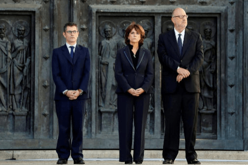 Estas son palabras del historiador Alberto Bárcena, que pone nombres y apellidos a casi todos los integrantes de los 9 maestros simbólicos que realizan el ritual «de la venganza», en algún momento de la exhumación, bajo la carpa instalada alrededor de la losa del Caudillo para evitar miradas o fotografías indiscretas del delicado momento. Recordar que la misma familia de Franco, 9 años después del fallecimiento del patriarca familiar, supuestamente vendió las fotos de su agonía a una revista del corazón, y ante tales antecedentes podría estar justificado el ocultarlo por parte de la organización, que era el Gobierno de España. Como representante de Salomón y número 1, la lista que le proporciona la fuente de Bárcena, señala a la ministra de Justicia de entonces, Dolores Delgado, que actuaba como notaria mayor del reino en el acto. Al director general de Registros y Notariado (cargo nombrado por el gobierno) Pedro Garrido Chamorro, le otorgan el puesto simbólico del «inspector» y número 2. El número 3 fue concedido a Félix Bolaños, por aquella época secretario general de Presidencia del Gobierno, interlocutor entre la administración y la familia del Generalísimo y máximo responsable de la organización del evento, representante del «jefe de los 9 elegidos«.