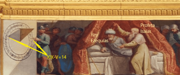 Ahora podremos comprender mejor aquel mensaje velado del final del pasillo de esa Biblioteca, donde se señalaba un extraño reloj de 24 horas para plasmar «el milagro del Sol de los 10 grados». En esta pintura se señala un retroceso de la hora 19, marcada por la sombra del reloj solar, y a un guardia apuntando con su dedo justo en la hora 5, 14 horas atrás. En el relato bíblico, el profeta Isaías prometía 15 años de vida extra al rey Ezequías. Ese 14 nos recordaría a los años exactos transcurridos entre la finalización de la obra de la gran obra del Rey Prudente y la muerte de este, que tanto hemos comentado. Velos, profecías, control de las emociones temporales. Todo en uno. La paciencia de la casta-sacerdotal es infinita y un proyecto de largo plazo que van perfeccionando y que iremos desvelando a medida que encontremos esas llaves que nos dejan. Ya lo decía aquel «plumilla» que se escondía tras un pseudónimo para dejar, negro sobre blanco, las intenciones de las partes visibles de estas sociedades cara a los profanos, mientras callaba las que iban encadenando desde poderes mucho más altos. Les dejamos hasta la próxima con esa «advertencia».. Buen viaje a todos.