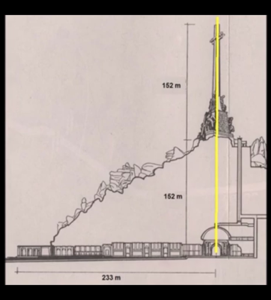 La inauguración fue el 20 de julio de 1972. La alineación del eje central de la reconstrucción, en cuyo extremo oriental se ubicó un pequeño monumento a los caídos del antiguo Cuartel de la Montaña, donde en los días del alzamiento de Julio del 36 fue el escenario de un dantesco derramamiento de sangre, tenía cierta desviación respecto al Este-Oeste; en concreto hacia la salida del Sol del 11 de Abril, más 10/11 días de aquel día de la Victoria de 1939, 33 años, 3 meses y 3 semanas después; y 36 años y 3 días tras aquel 17 de Julio del comienzo de la Guerra Civil. Pero eso no es todo. La puesta de Sol del día de la Hispanidad, el 12 de Octubre, como bien nos descubre el ujier de las llaves, coincide con ese alineamiento central. De nuevo, más 10/11 jornadas del día del Caudillo, ahora sí más faraón que antes y haciendo rodar los engranajes hacia otros lugares y conectando, otra vez, con ese tiempo imperial. Nos viene a la cabeza aquel famoso arqueólogo del cine de aventuras colocando un medallón sagrado con el orificio adecuado y sujeto con una medida precisa proporcionada por una vara adecuada, esperando el momento justo para alinear la luz del Sol que le señale el «lugar correcto» en aquella «habitación de los mapas» para encontrar el «arca del pueblo elegido». Todo numerado, pesado y guardado, a ojo de los profanos, claro, como siempre. ¿Tal vez ese «3» coleteando en las fechas nos abra la puerta de la penúltima cerradura (en estos casos nunca es conveniente decir la última) o una alusión a los 3 portales del conjunto?