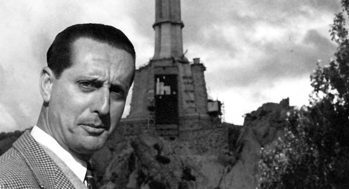 El encargo de tan magna construcción fue asignado a la máxima autoridad arquitectónica en ese momento, Pedro Muguruza, al que ya pudimos ver actuar hace unos años como arquitecto de la curiosa Estación de Francia, de Barcelona. La obra contemplaba una gran Basílica horadada en la roca, a modo de concepto simbólico-religioso de cripta; y una gran Cruz coronando la montaña, esta como sugerente pirámide natural, como gran símbolo visible, a modo de concepto de estela. Esto es, la Cruz/ montaña/ pirámide como estela simbólica ejerciendo de polo positivo del conjunto; y la Basílica/ cueva/ tumba como polo negativo. El concepto de la montaña y la caverna, de lo visible y de lo guardado, de lo ritualizado a los ojos de todos y de lo custodiado y medido para «alterar la conciencia» del peregrino que acceda a su interior. Un axis mundi que conectara los cielos y el interior de la tierra.